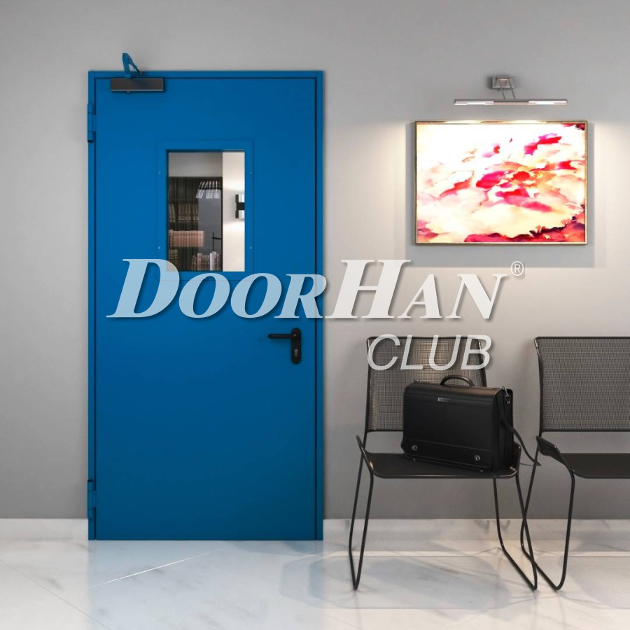 С наружной и внутренней стороны дверь окрашена порошковой краской в RAL7035 (светло-серый) и имеет структуру поверхности «шагрень». Такое исполнение очень практично в эксплуатации — скрывает мелкие царапины и загрязнения, легко очищается без использования специальных средств. По желанию клиента возможно остекление. Имеют широкую линейку размеров. Лишь в редких случаях клиентам необходимо изготовление на заказ. Средний срок службы составляет 15-20 лет.