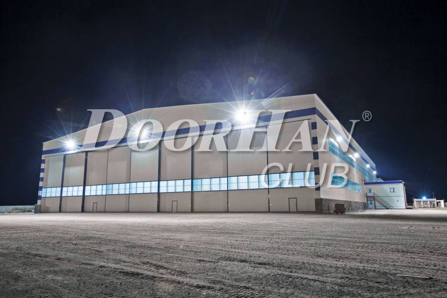 Используются в больших помещениях для техобслуживания авиатехники – самолетов разного уровня – от широкофюзеляжных до Премиум-сегмента. Они также могут монтироваться и там, где необходимы увеличенные размеры проема. Они устанавливаются в: