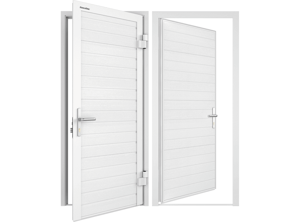 - Двухсекционные петли с износостойкими подшипниками обеспечивают легкое открывание и закрывание двери. Регулируемые петли облегчают монтаж двери.
